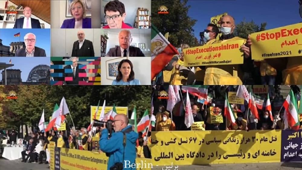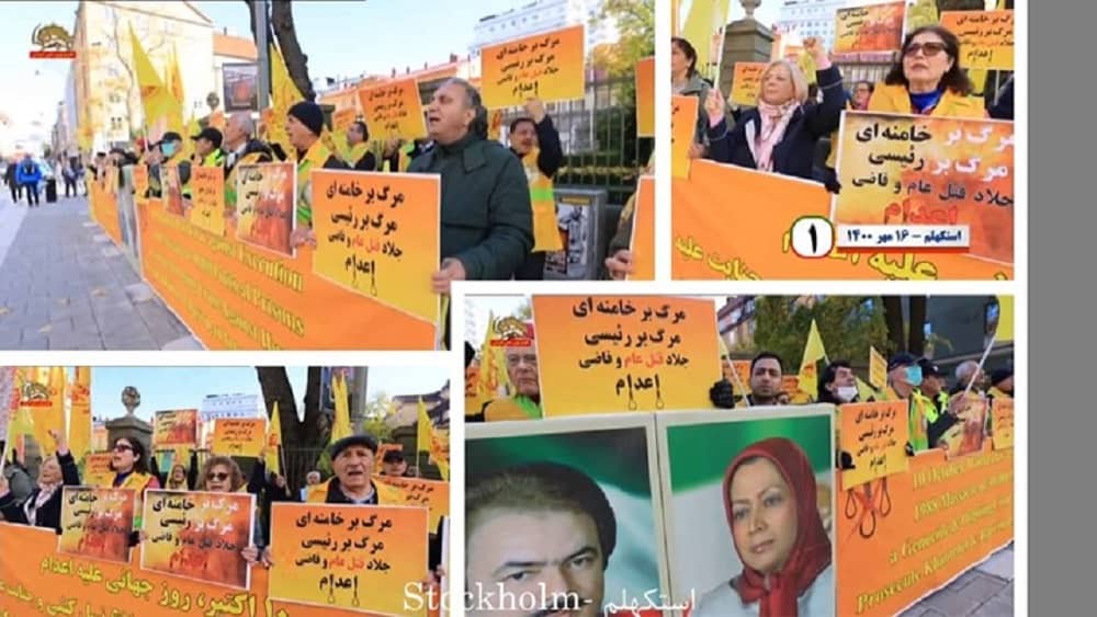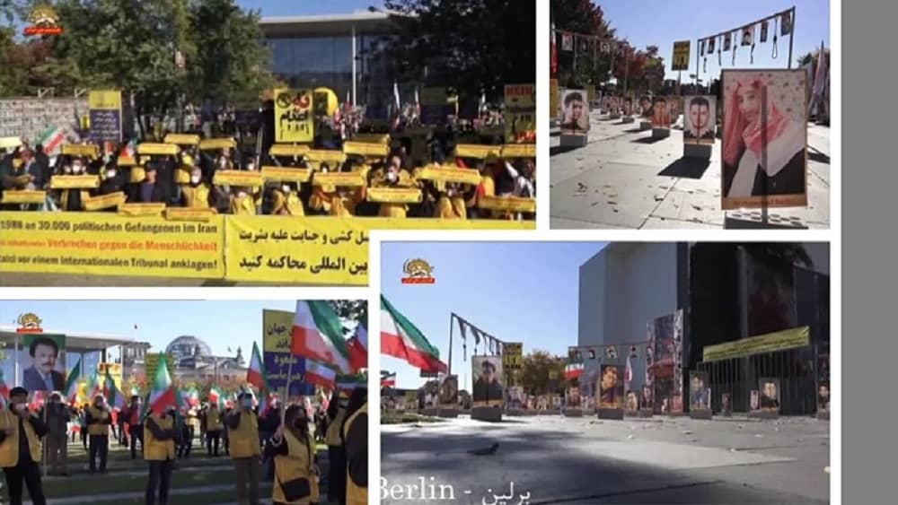 On October 8, the rallies took place in Washington DC, Los Angeles, Paris, London, Rome, Geneva, Amsterdam, Brussels, Toronto, Vancouver, Montreal, Stockholm, and Copenhagen. The demonstrations continued on Saturday, October 9, in Berlin, San Francisco, Dallas (Texas), Gothenburg, Vienna, Oslo, and Bucharest. The demonstrators condemned the clerical regime’s crimes and denounced the policy of appeasement towards the religious fascism ruling Iran, and any dealings with this regime that has committed the 1988 massacre. In particular, they condemned inviting Ebrahim Raisi (the mass murderer of the 1988 massacre) to the “2021 United Nations Climate Change Conference – COP26” in Scotland. Raisi was a member of the Death Committee that ordered the execution of thousands during the 1988 massacre of 30,000 political prisoners. The demonstrators asked for the ostracization of the clerical regime and the prosecution of its leaders for crimes against humanity and genocide.